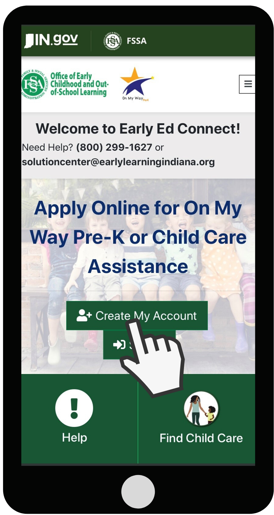 The first step in using Early Ed Connect is to create an account. You need to create an account to apply for child care assistance (CCDF) or On My Way Pre-K.