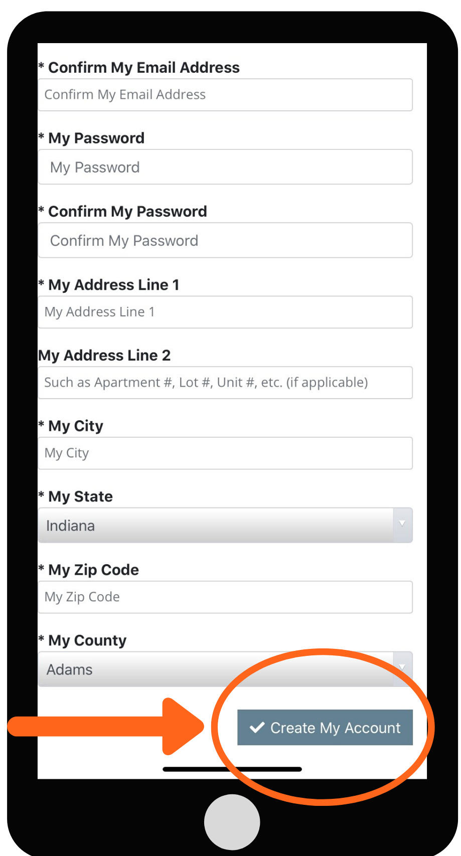 5. Enter your address, city, state, ZIP code and county.