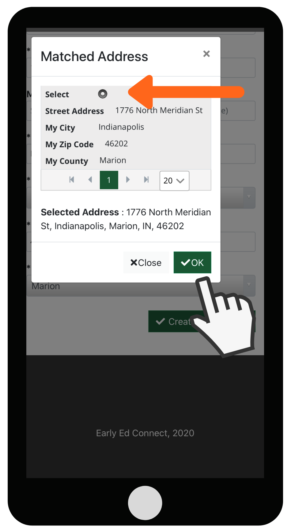 7. Select your correct address from the choices and click OK.
