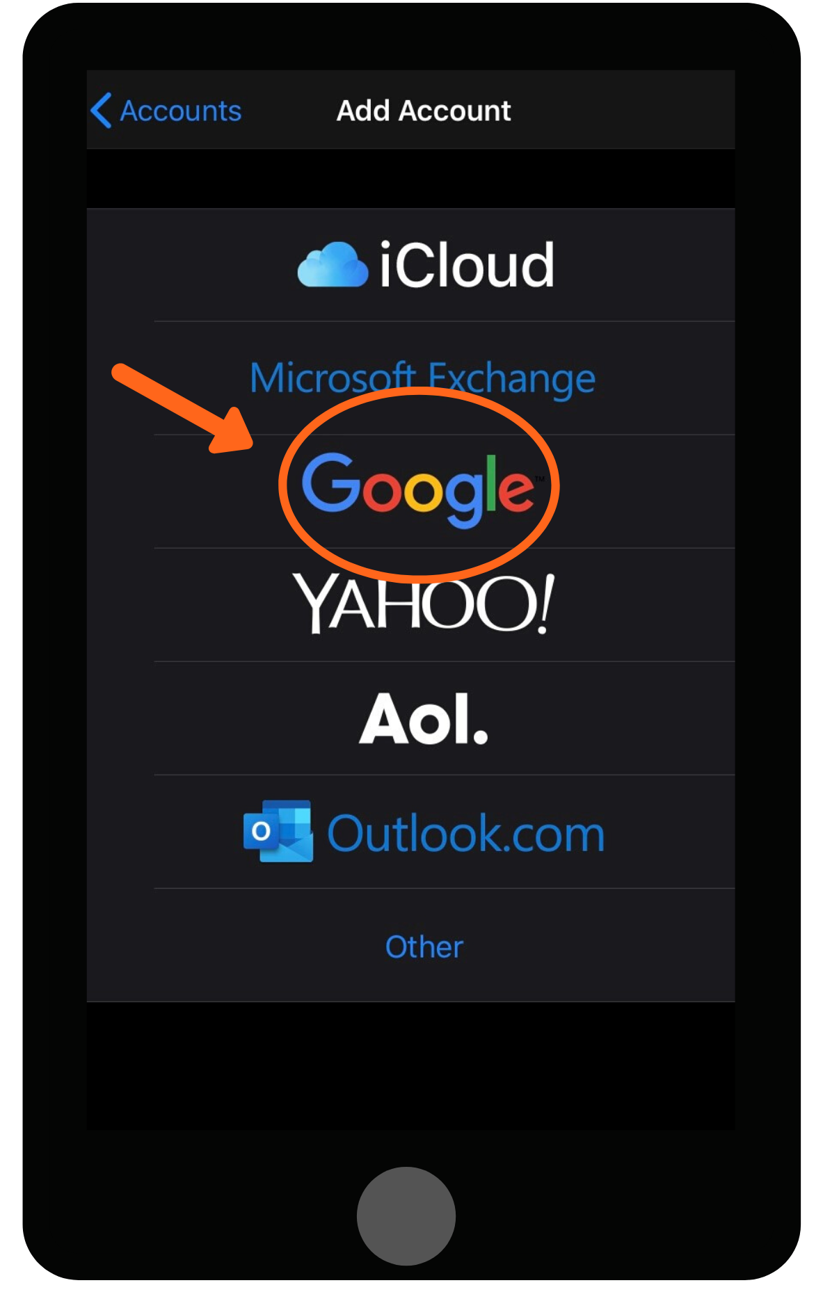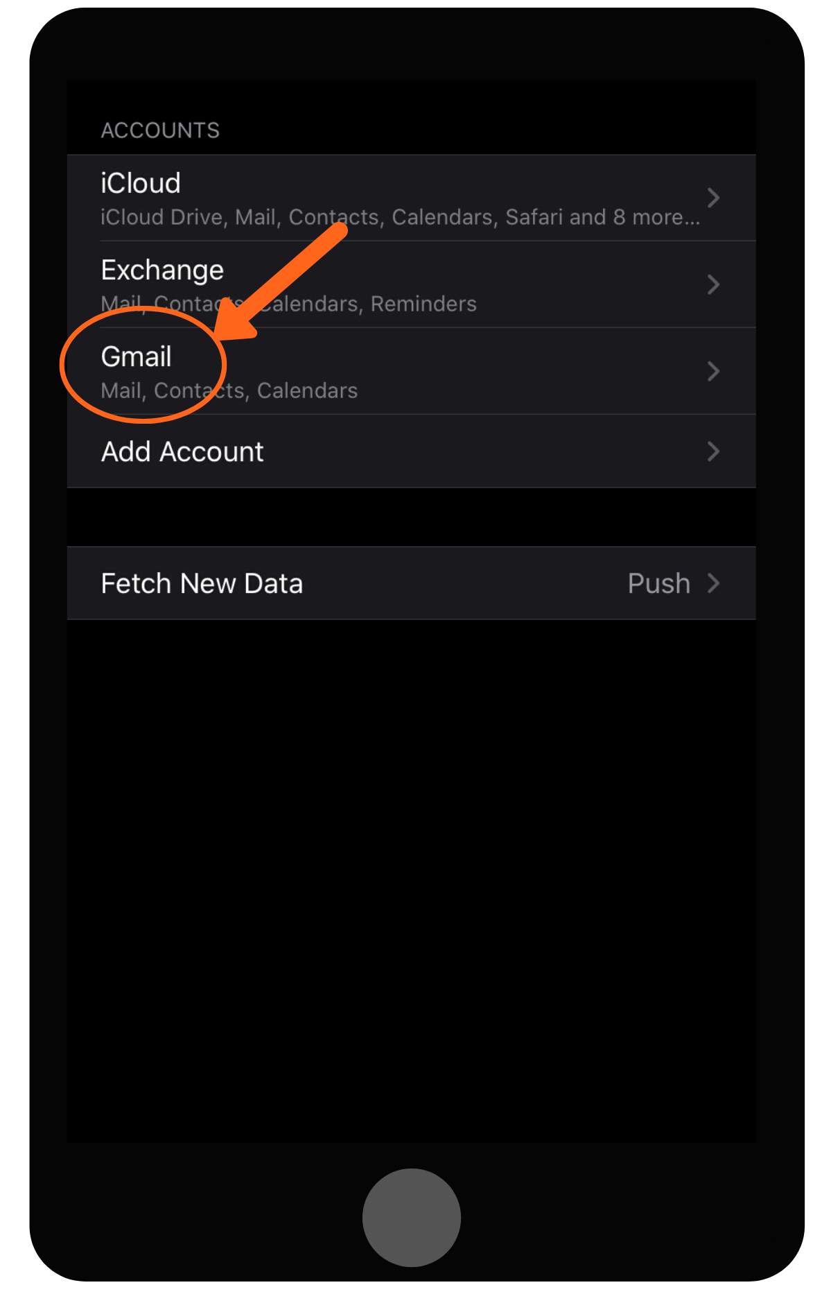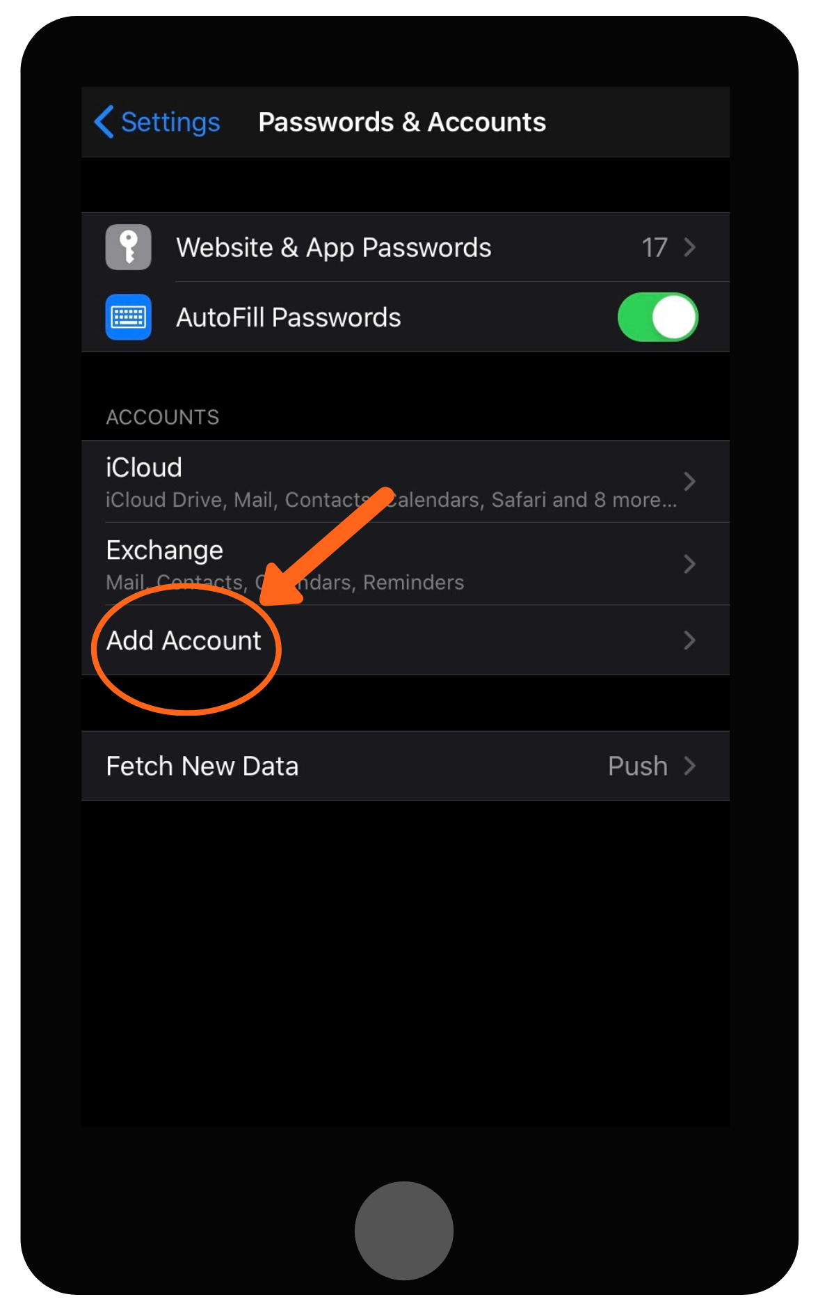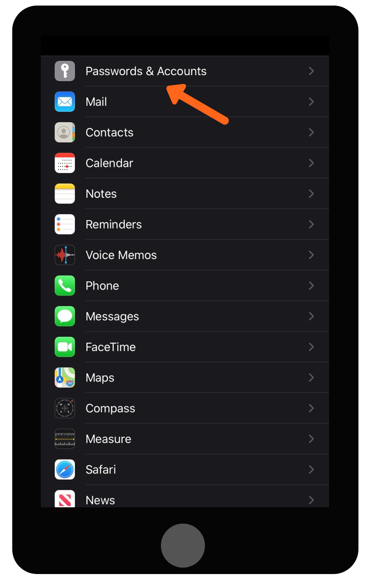 2. Find the Account menu (or Passwords and Accounts, depending on your system device).
