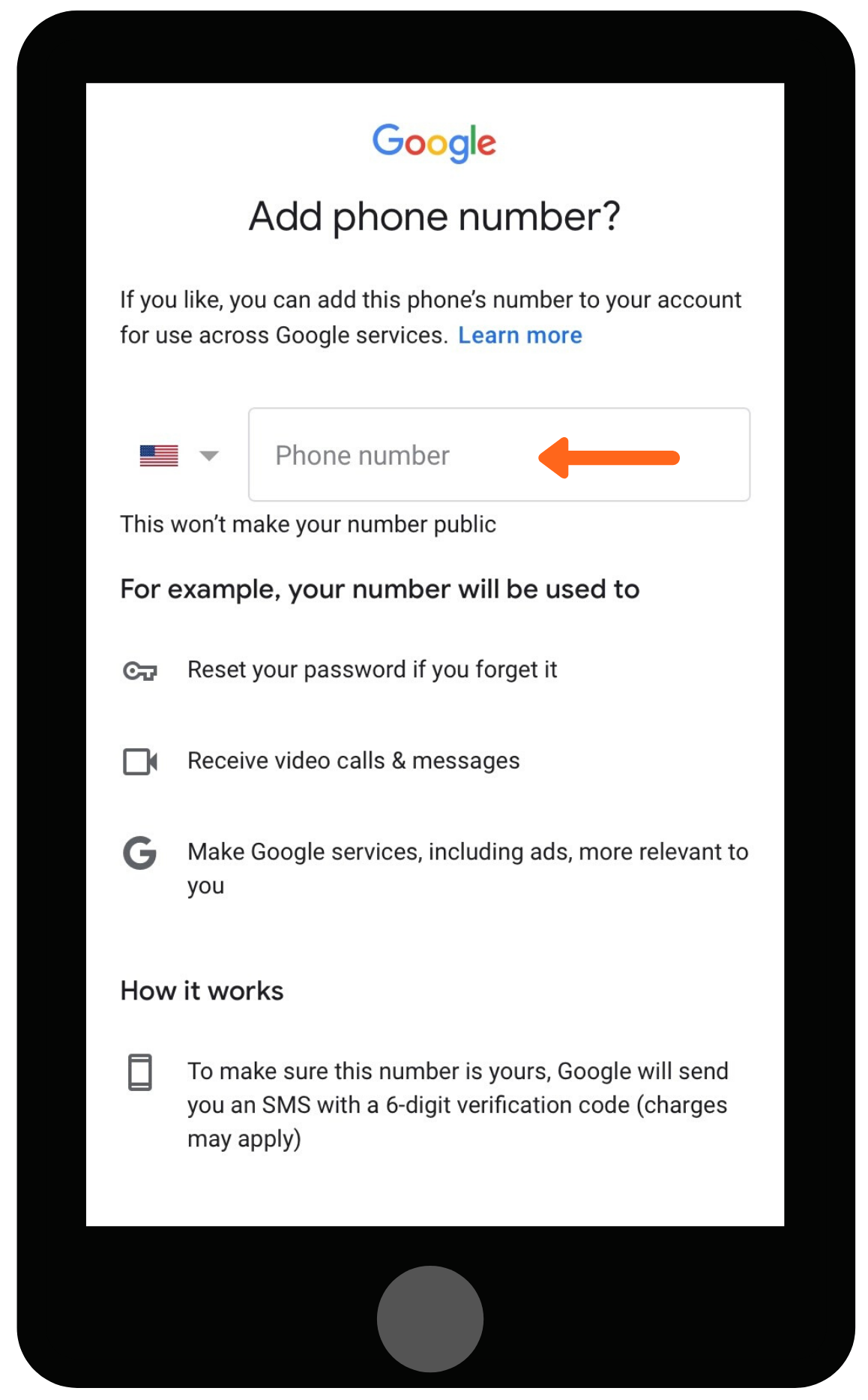10. Add a phone number for your account or click Skip at the bottom-left of the screen.