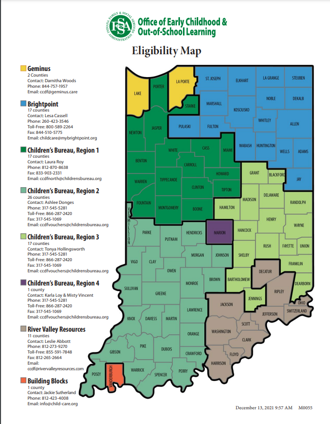 - Click here, CCDF-Intake-Office Map to find your local eligibility office.