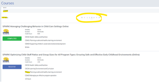 - To find training based on CDA coursework criteria, type in keywords like "CDA01," "CDA02," "CDA03," and so on to find available courses that meet those training requirements. You may have to click through multiple pages to find ones that are available for registration.