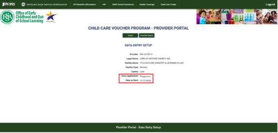 Date to Start: Allows you to select a future date when your PPP or CCMS link will be active. Note: Do not select an Entry Application or Date to Start until all past and the most recent service period have been submitted. Only future dates can be selected.