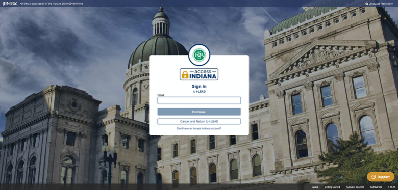 3.) Log in to your Access Indiana account. (If you don't have an account with the same email address as your educator invitation, or you get a message that you already have an account but do not recall the password, use this step-by-step guide. Then go back to step 1 to log in from the educator invitation.)