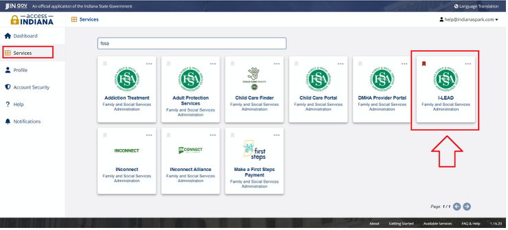 by typing in “FSSA.” Select "I-LEAD: Family and Social Services Administration."