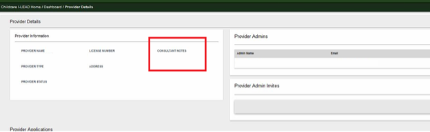 Monitor your email and the View Details or Provider Details section of your license on I-LEAD to see messages from your consultant. If an application requires a change, you may receive an “Incomplete Application” email from no_reply_i-lead@fssa.in.gov, and/or there may be a consultant note in the Provider Information box next to the Provider Admin section. The application may also be in "Edit" mode in the Provider Application section. For an initial inspection and communication, consultants typically communicate by email. The consultant will only schedule an in-person inspection of the premises once all consent forms and licensing paperwork are completed online. Licenses are issued via an admin invitation when all requirements for the child care program are met. Once all changes and consent forms for a background check are complete, the licensing consultant will reach out.