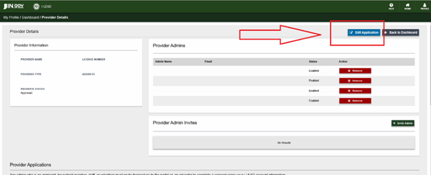 Application Details: This section primarily focuses on information about the facility and services offered at the program. Changes that can be made to this page include: